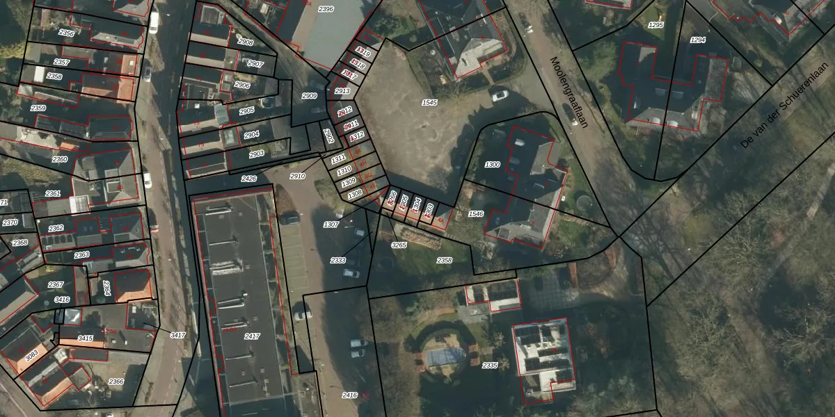 Moolengraaflaan 4-C is gelegen op kadastraal perceel VUG00L1304. Deze kadastrale aanduiding is uniek en wordt gebruikt door het Kadaster om eigendomsrechten en andere zakelijke rechten vast te leggen. Het perceel maakt onderdeel uit van de kadastrale gemeente Vught.