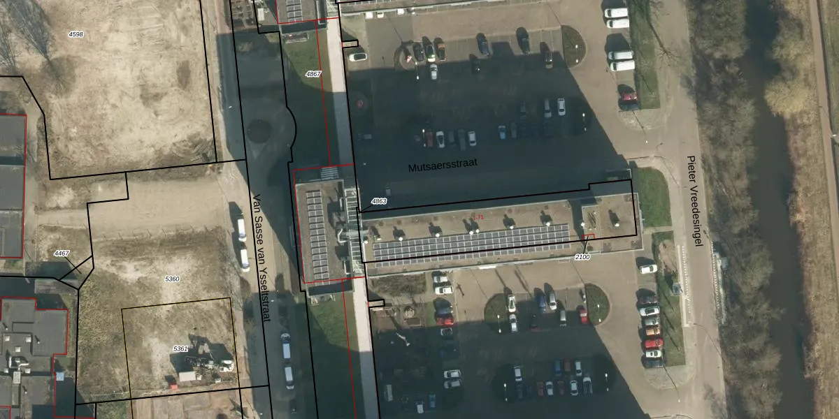 Het perceel waarop Mutsaersstraat 1-B staat heeft een oppervlakte van 802 m². Dit is een groot perceel. De perceeloppervlakte wordt geregistreerd door het Kadaster. Gedetailleerde informatie over de maten van dit perceel kunt u vinden in het rapport Kadastrale kaart met maatvoering van Mutsaersstraat 1-B.