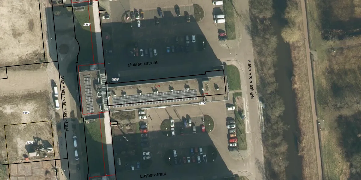 Mutsaersstraat 19 is gelegen op kadastraal perceel VUG00D2100. Deze kadastrale aanduiding is uniek en wordt gebruikt door het Kadaster om eigendomsrechten en andere zakelijke rechten vast te leggen. Het perceel maakt onderdeel uit van de kadastrale gemeente Vught.
