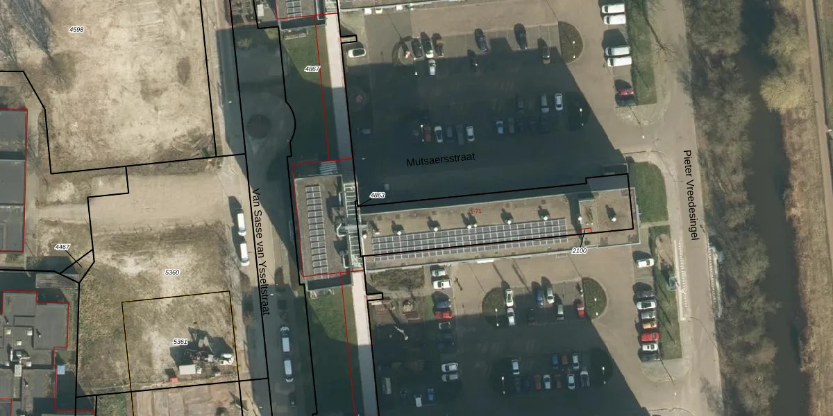 Mutsaersstraat 37 is gelegen op kadastraal perceel VUG00D2100. Deze kadastrale aanduiding is uniek en wordt gebruikt door het Kadaster om eigendomsrechten en andere zakelijke rechten vast te leggen. Het perceel maakt onderdeel uit van de kadastrale gemeente Vught.