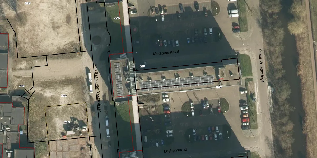 Mutsaersstraat 39 is gelegen op kadastraal perceel VUG00D2100. Deze kadastrale aanduiding is uniek en wordt gebruikt door het Kadaster om eigendomsrechten en andere zakelijke rechten vast te leggen. Het perceel maakt onderdeel uit van de kadastrale gemeente Vught.