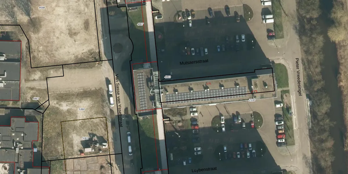 Mutsaersstraat 42 is gelegen op kadastraal perceel VUG00D2100. Deze kadastrale aanduiding is uniek en wordt gebruikt door het Kadaster om eigendomsrechten en andere zakelijke rechten vast te leggen. Het perceel maakt onderdeel uit van de kadastrale gemeente Vught.