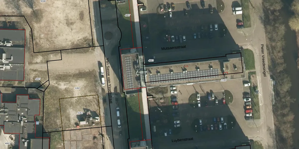 Het perceel waarop Mutsaersstraat 47 staat heeft een oppervlakte van 802 m². Dit is een groot perceel. De perceeloppervlakte wordt geregistreerd door het Kadaster. Gedetailleerde informatie over de maten van dit perceel kunt u vinden in het rapport Kadastrale kaart met maatvoering van Mutsaersstraat 47.