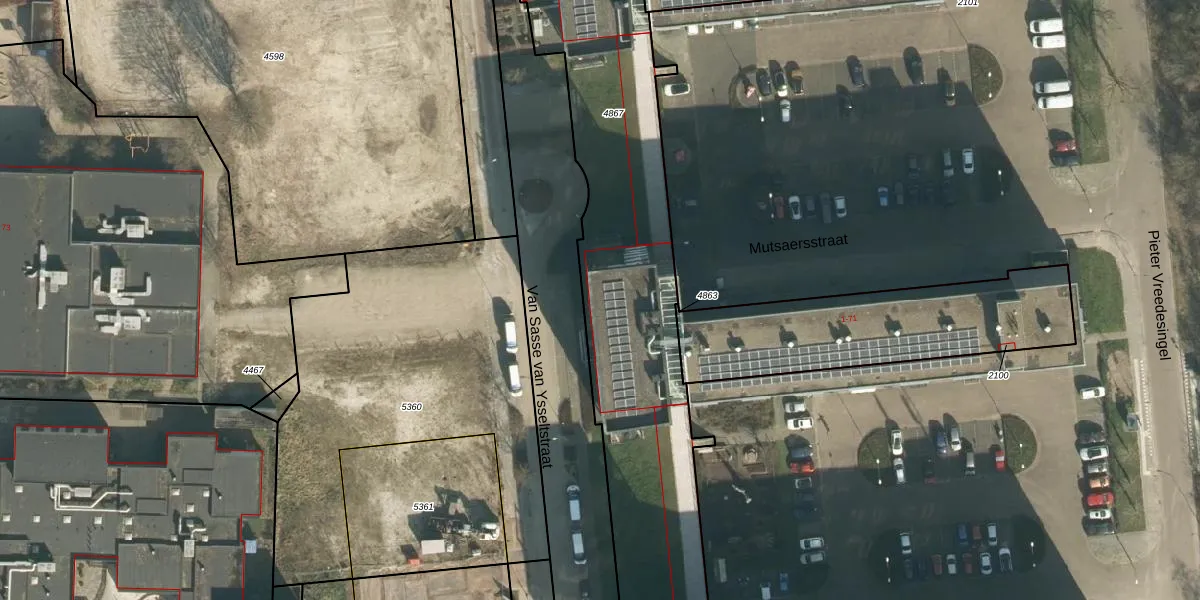 Mutsaersstraat 55 is gelegen op kadastraal perceel VUG00D4867. Deze kadastrale aanduiding is uniek en wordt gebruikt door het Kadaster om eigendomsrechten en andere zakelijke rechten vast te leggen. Het perceel maakt onderdeel uit van de kadastrale gemeente Vught.