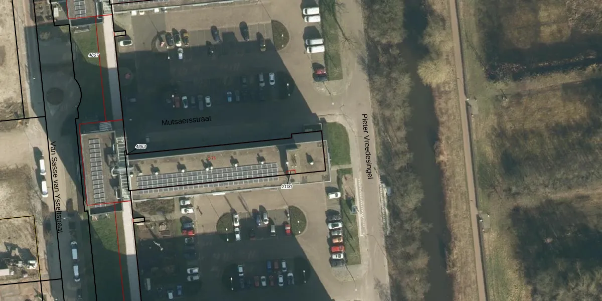 Het perceel waarop Mutsaersstraat 6 staat heeft een oppervlakte van 802 m². Dit is een groot perceel. De perceeloppervlakte wordt geregistreerd door het Kadaster. Gedetailleerde informatie over de maten van dit perceel kunt u vinden in het rapport Kadastrale kaart met maatvoering van Mutsaersstraat 6.