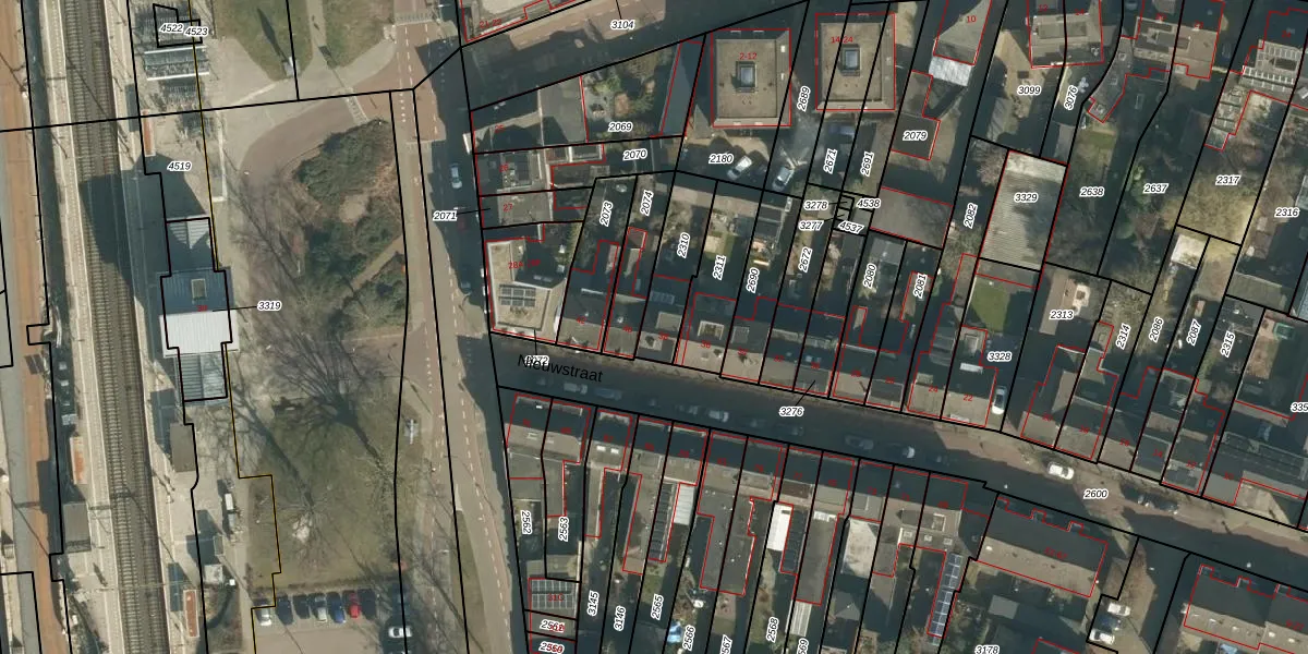 Het perceel waarop Nieuwstraat 38 staat heeft een oppervlakte van 179 m². Dit is een middelgroot perceel. De perceeloppervlakte wordt geregistreerd door het Kadaster. Gedetailleerde informatie over de maten van dit perceel kunt u vinden in het rapport Kadastrale kaart met maatvoering van Nieuwstraat 38.