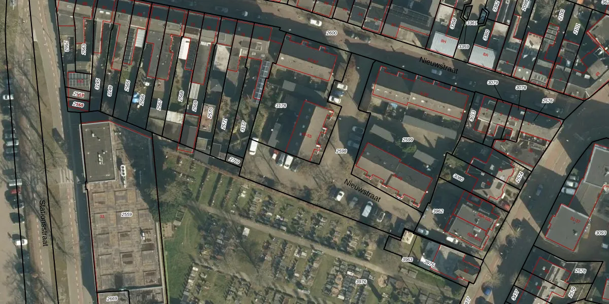 Het perceel waarop Nieuwstraat 47 staat heeft een oppervlakte van 887 m². Dit is een groot perceel. De perceeloppervlakte wordt geregistreerd door het Kadaster. Gedetailleerde informatie over de maten van dit perceel kunt u vinden in het rapport Kadastrale kaart met maatvoering van Nieuwstraat 47.