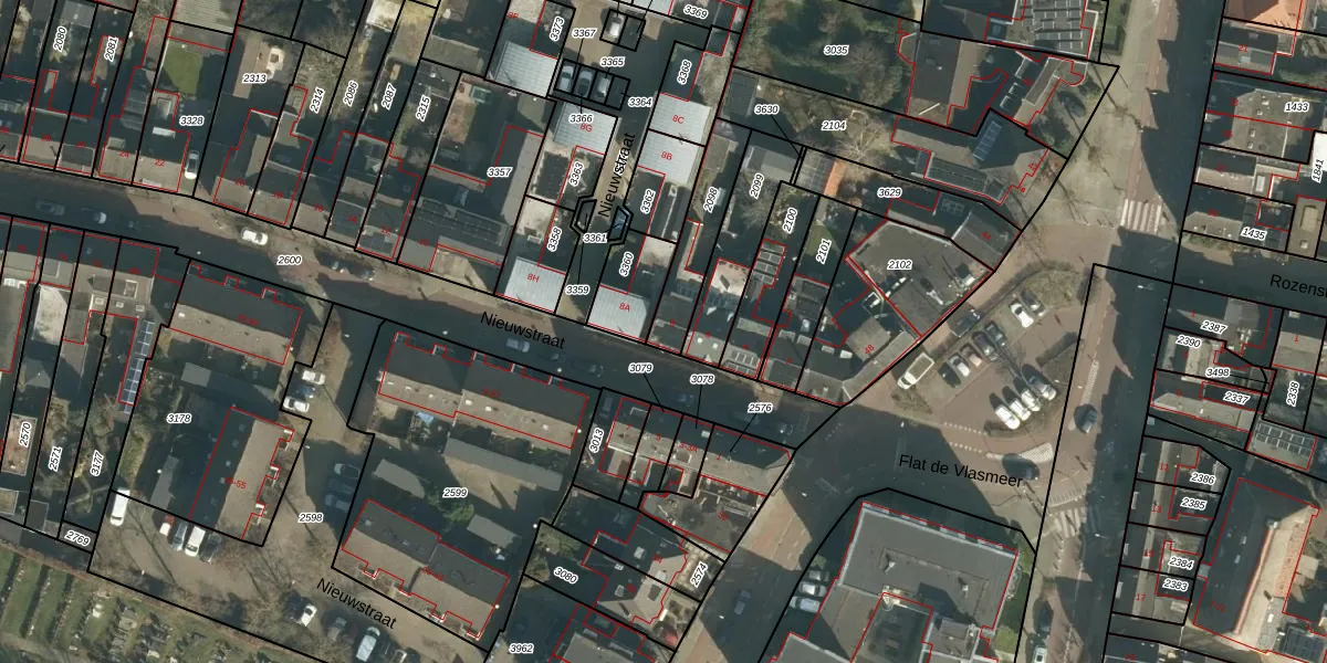 Nieuwstraat 8 is gelegen op kadastraal perceel VUG00L2098. Deze kadastrale aanduiding is uniek en wordt gebruikt door het Kadaster om eigendomsrechten en andere zakelijke rechten vast te leggen. Het perceel maakt onderdeel uit van de kadastrale gemeente Vught.