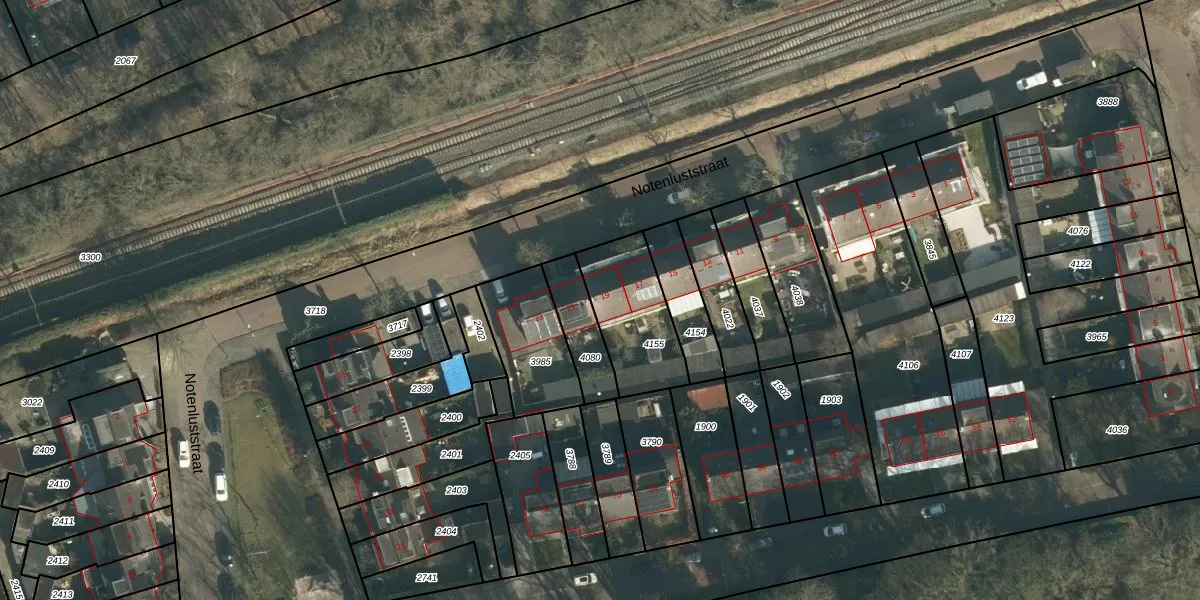 Notenluststraat 19 is gelegen op kadastraal perceel VUG00L4155. Deze kadastrale aanduiding is uniek en wordt gebruikt door het Kadaster om eigendomsrechten en andere zakelijke rechten vast te leggen. Het perceel maakt onderdeel uit van de kadastrale gemeente Vught.