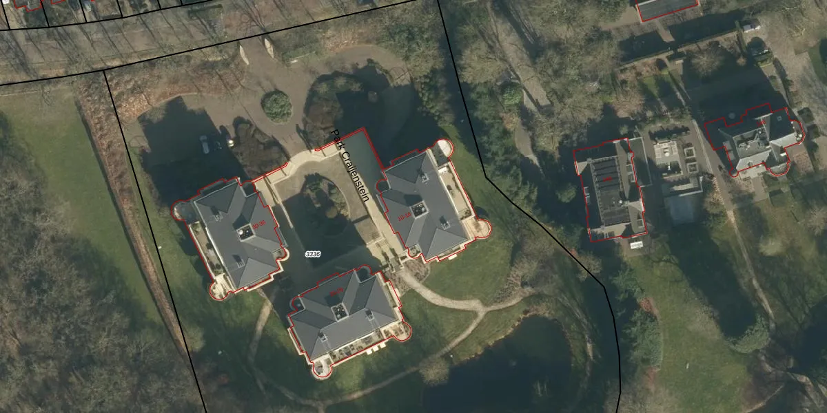 Het perceel waarop Park Craijenstein 11 staat heeft een oppervlakte van 1,0 ha. Dit is een zeer groot perceel. De perceeloppervlakte wordt geregistreerd door het Kadaster. Gedetailleerde informatie over de maten van dit perceel kunt u vinden in het rapport Kadastrale kaart met maatvoering van Park Craijenstein 11.