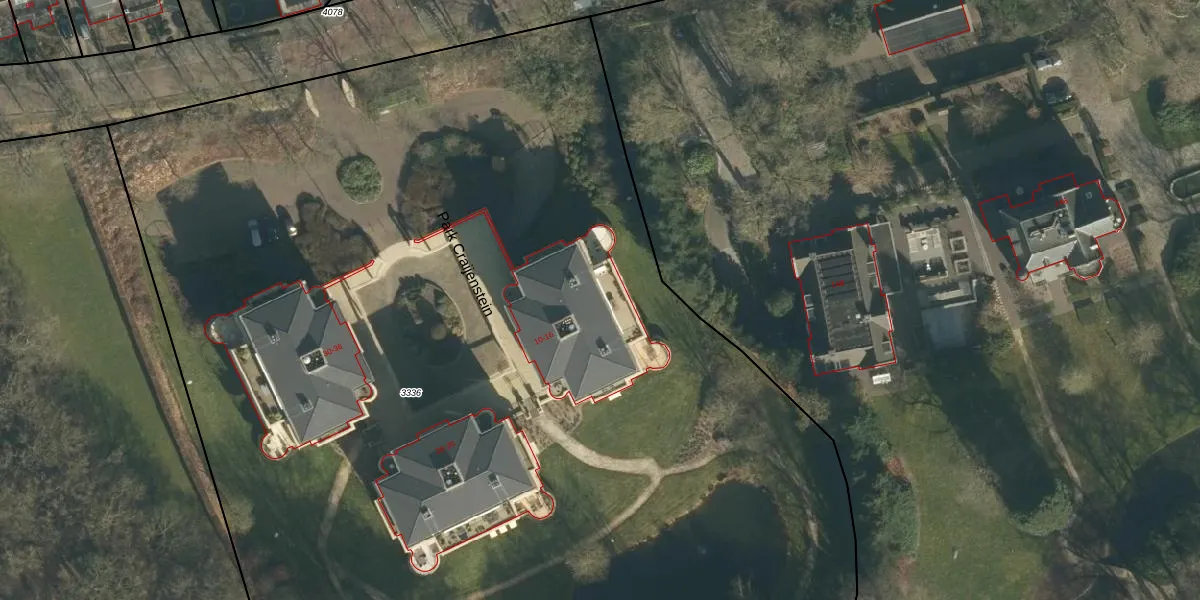 Het perceel waarop Park Craijenstein 15 staat heeft een oppervlakte van 1,0 ha. Dit is een zeer groot perceel. De perceeloppervlakte wordt geregistreerd door het Kadaster. Gedetailleerde informatie over de maten van dit perceel kunt u vinden in het rapport Kadastrale kaart met maatvoering van Park Craijenstein 15.