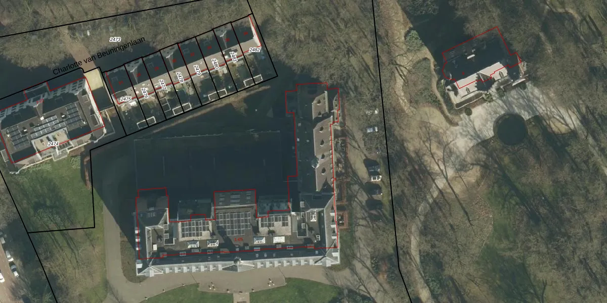 Het perceel waarop Park Glorieux 65 staat heeft een oppervlakte van 1,3 ha. Dit is een zeer groot perceel. De perceeloppervlakte wordt geregistreerd door het Kadaster. Gedetailleerde informatie over de maten van dit perceel kunt u vinden in het rapport Kadastrale kaart met maatvoering van Park Glorieux 65.