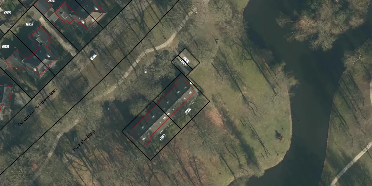 Het perceel waarop Park Reeburg 12 staat heeft een oppervlakte van 465 m². Dit is een groot perceel. De perceeloppervlakte wordt geregistreerd door het Kadaster. Gedetailleerde informatie over de maten van dit perceel kunt u vinden in het rapport Kadastrale kaart met maatvoering van Park Reeburg 12.
