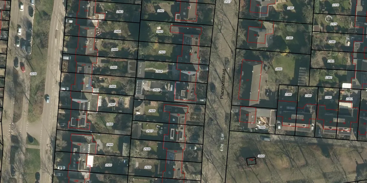 Het perceel waarop Piacenzastraat 48 staat heeft een oppervlakte van 460 m². Dit is een groot perceel. De perceeloppervlakte wordt geregistreerd door het Kadaster. Gedetailleerde informatie over de maten van dit perceel kunt u vinden in het rapport Kadastrale kaart met maatvoering van Piacenzastraat 48.