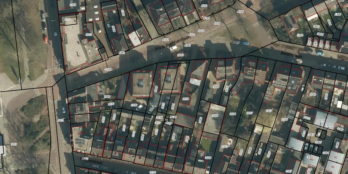 Gebruik de zoekbalk of klik op een perceel voor informatie over de adressen binnen dit perceel.