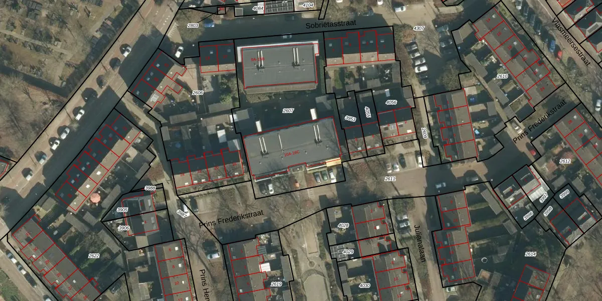 Prins Frederikstraat 12-A is gelegen op kadastraal perceel VUG00L2607. Deze kadastrale aanduiding is uniek en wordt gebruikt door het Kadaster om eigendomsrechten en andere zakelijke rechten vast te leggen. Het perceel maakt onderdeel uit van de kadastrale gemeente Vught.