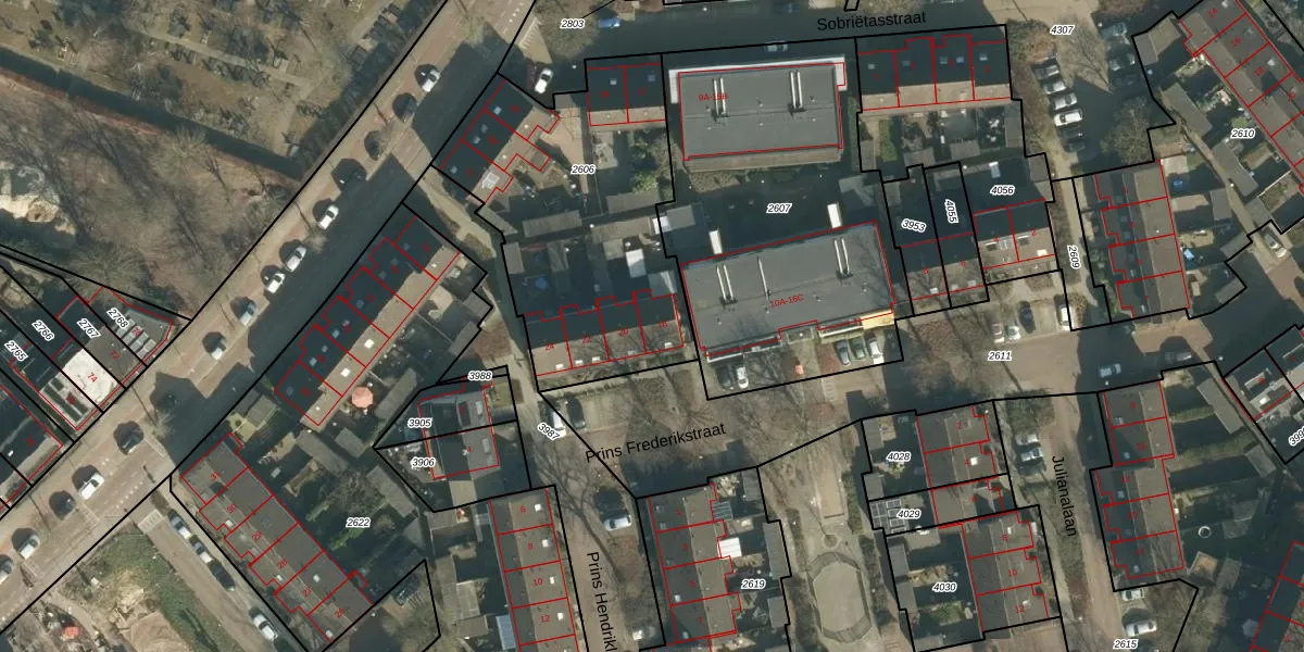 Prins Frederikstraat 18 is gelegen op kadastraal perceel VUG00L2606. Deze kadastrale aanduiding is uniek en wordt gebruikt door het Kadaster om eigendomsrechten en andere zakelijke rechten vast te leggen. Het perceel maakt onderdeel uit van de kadastrale gemeente Vught.