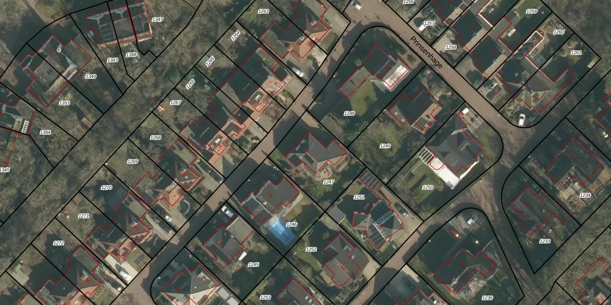 Het perceel waarop Prinsenhage 46 staat heeft een oppervlakte van 528 m². Dit is een groot perceel. De perceeloppervlakte wordt geregistreerd door het Kadaster. Gedetailleerde informatie over de maten van dit perceel kunt u vinden in het rapport Kadastrale kaart met maatvoering van Prinsenhage 46.