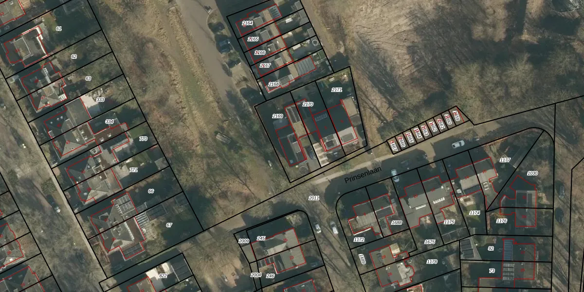 Prinsenlaan 1 is gelegen op kadastraal perceel VUG00K2169. Deze kadastrale aanduiding is uniek en wordt gebruikt door het Kadaster om eigendomsrechten en andere zakelijke rechten vast te leggen. Het perceel maakt onderdeel uit van de kadastrale gemeente Vught.