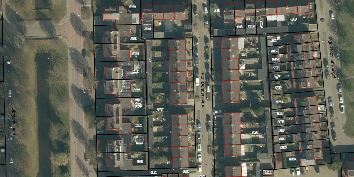Prof. Dondersstraat 28 is gelegen op kadastraal perceel VUG00D3495. Deze kadastrale aanduiding is uniek en wordt gebruikt door het Kadaster om eigendomsrechten en andere zakelijke rechten vast te leggen. Het perceel maakt onderdeel uit van de kadastrale gemeente Vught.