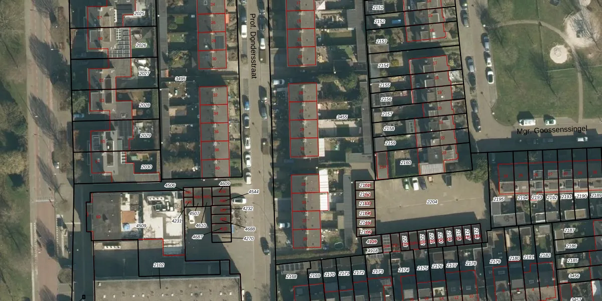 Prof. Dondersstraat 31 is gelegen op kadastraal perceel VUG00D3455. Deze kadastrale aanduiding is uniek en wordt gebruikt door het Kadaster om eigendomsrechten en andere zakelijke rechten vast te leggen. Het perceel maakt onderdeel uit van de kadastrale gemeente Vught.