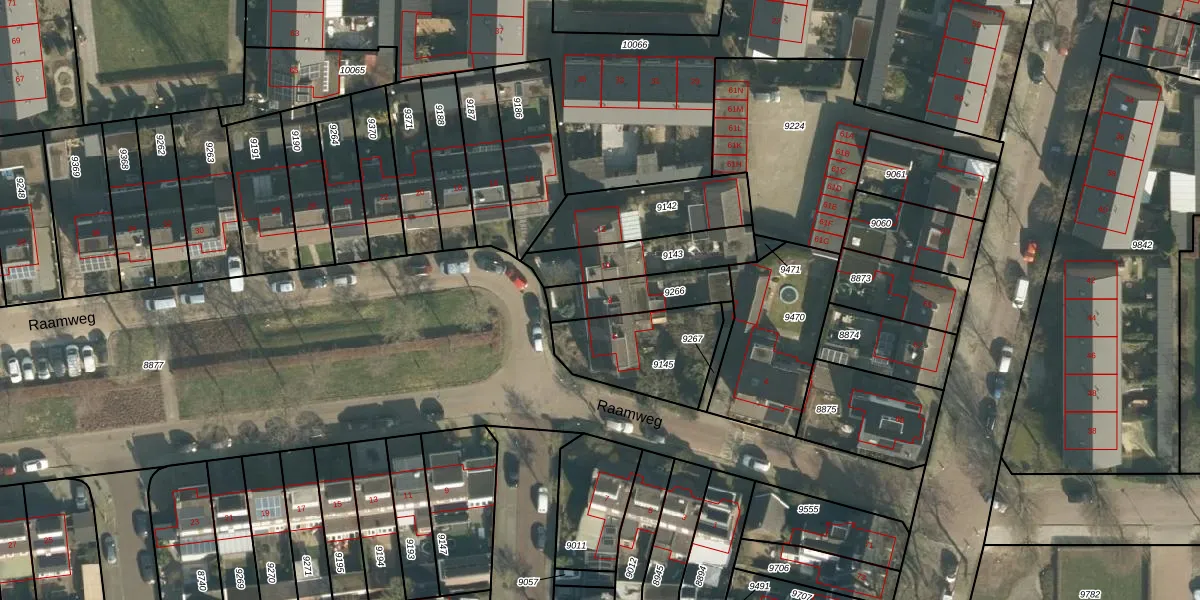 Raamweg 8 is gelegen op kadastraal perceel VUG00B9266. Deze kadastrale aanduiding is uniek en wordt gebruikt door het Kadaster om eigendomsrechten en andere zakelijke rechten vast te leggen. Het perceel maakt onderdeel uit van de kadastrale gemeente Vught.