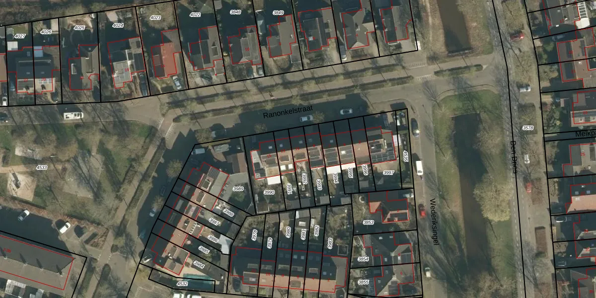 Gebruik de zoekbalk of klik op een perceel voor informatie over de adressen binnen dit perceel.