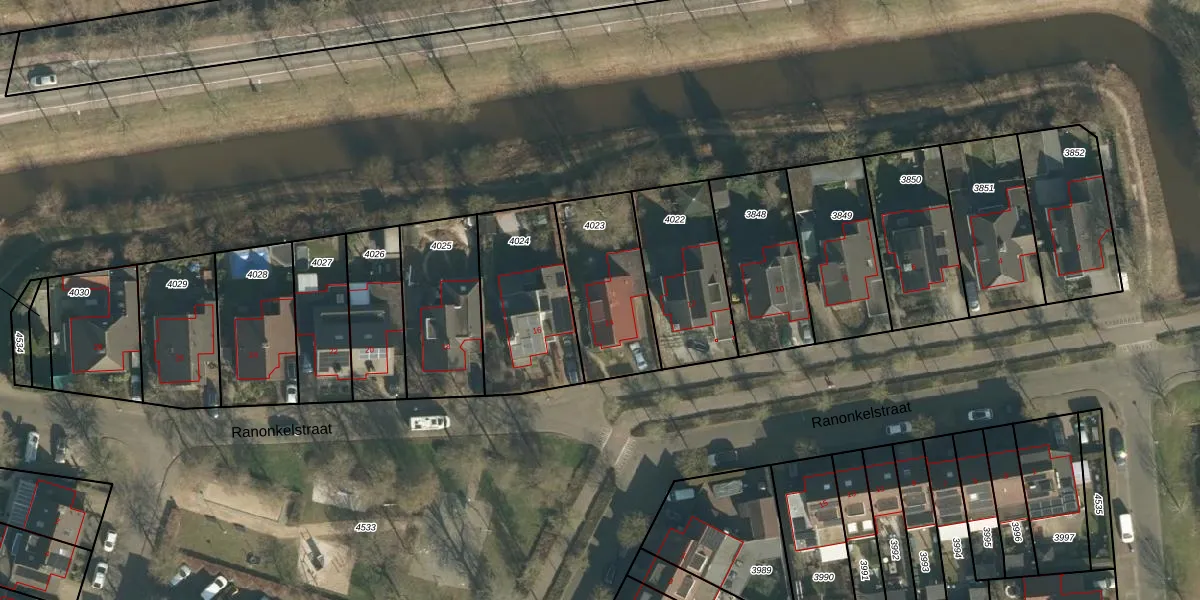 Ranonkelstraat 14 is gelegen op kadastraal perceel VUG00D4023. Deze kadastrale aanduiding is uniek en wordt gebruikt door het Kadaster om eigendomsrechten en andere zakelijke rechten vast te leggen. Het perceel maakt onderdeel uit van de kadastrale gemeente Vught.