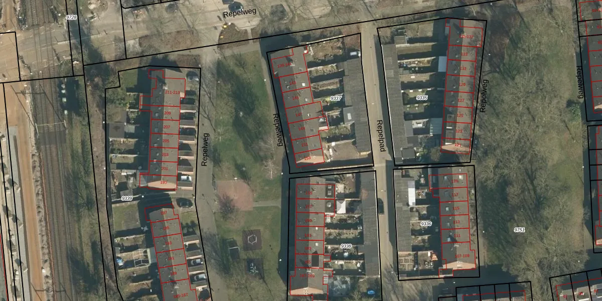 Repelweg 151 is gelegen op kadastraal perceel VUG00B9337. Deze kadastrale aanduiding is uniek en wordt gebruikt door het Kadaster om eigendomsrechten en andere zakelijke rechten vast te leggen. Het perceel maakt onderdeel uit van de kadastrale gemeente Vught.