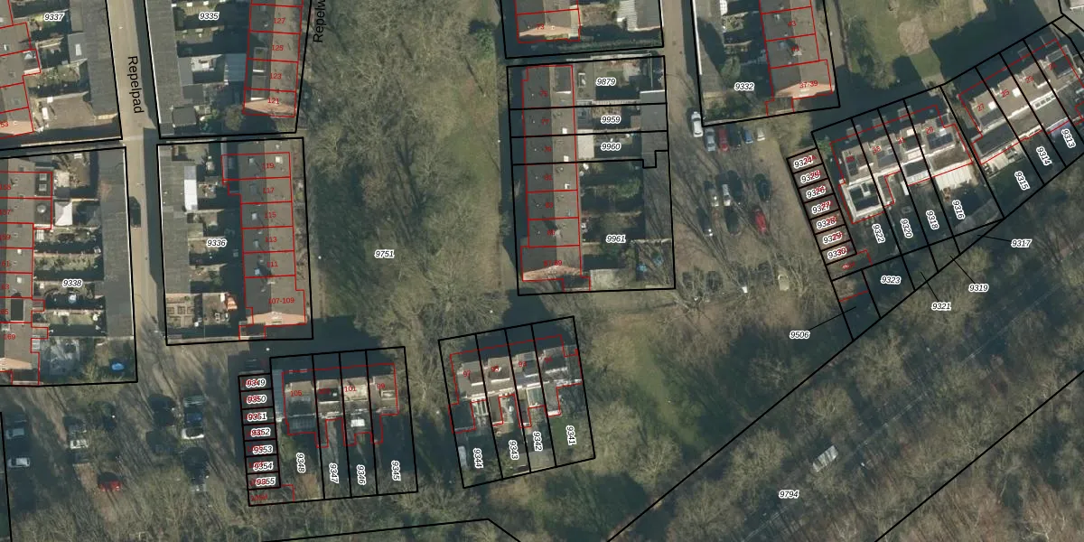 Repelweg 89 is gelegen op kadastraal perceel VUG00B9961. Deze kadastrale aanduiding is uniek en wordt gebruikt door het Kadaster om eigendomsrechten en andere zakelijke rechten vast te leggen. Het perceel maakt onderdeel uit van de kadastrale gemeente Vught.