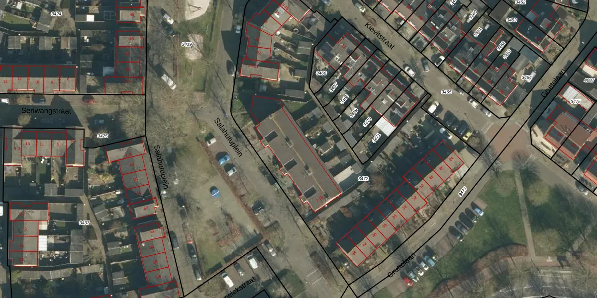 Het perceel waarop Salahutuplein 12 staat heeft een oppervlakte van 3587 m². Dit is een zeer groot perceel. De perceeloppervlakte wordt geregistreerd door het Kadaster. Gedetailleerde informatie over de maten van dit perceel kunt u vinden in het rapport Kadastrale kaart met maatvoering van Salahutuplein 12.