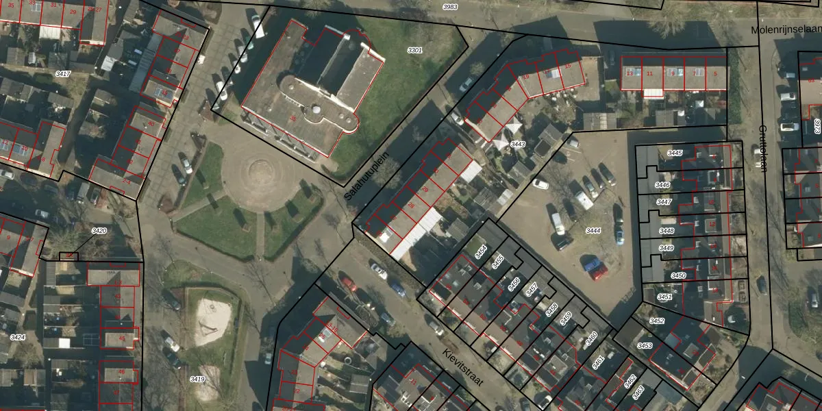 Het perceel waarop Salahutuplein 28 staat heeft een oppervlakte van 2329 m². Dit is een zeer groot perceel. De perceeloppervlakte wordt geregistreerd door het Kadaster. Gedetailleerde informatie over de maten van dit perceel kunt u vinden in het rapport Kadastrale kaart met maatvoering van Salahutuplein 28.