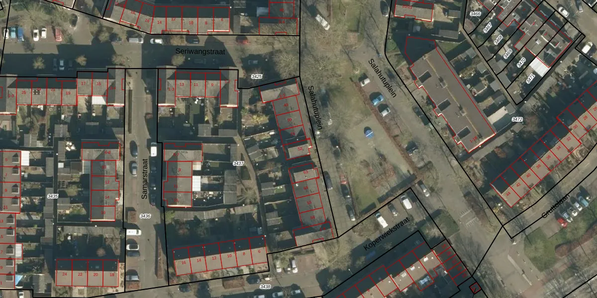 Het perceel waarop Salahutuplein 52 staat heeft een oppervlakte van 3416 m². Dit is een zeer groot perceel. De perceeloppervlakte wordt geregistreerd door het Kadaster. Gedetailleerde informatie over de maten van dit perceel kunt u vinden in het rapport Kadastrale kaart met maatvoering van Salahutuplein 52.