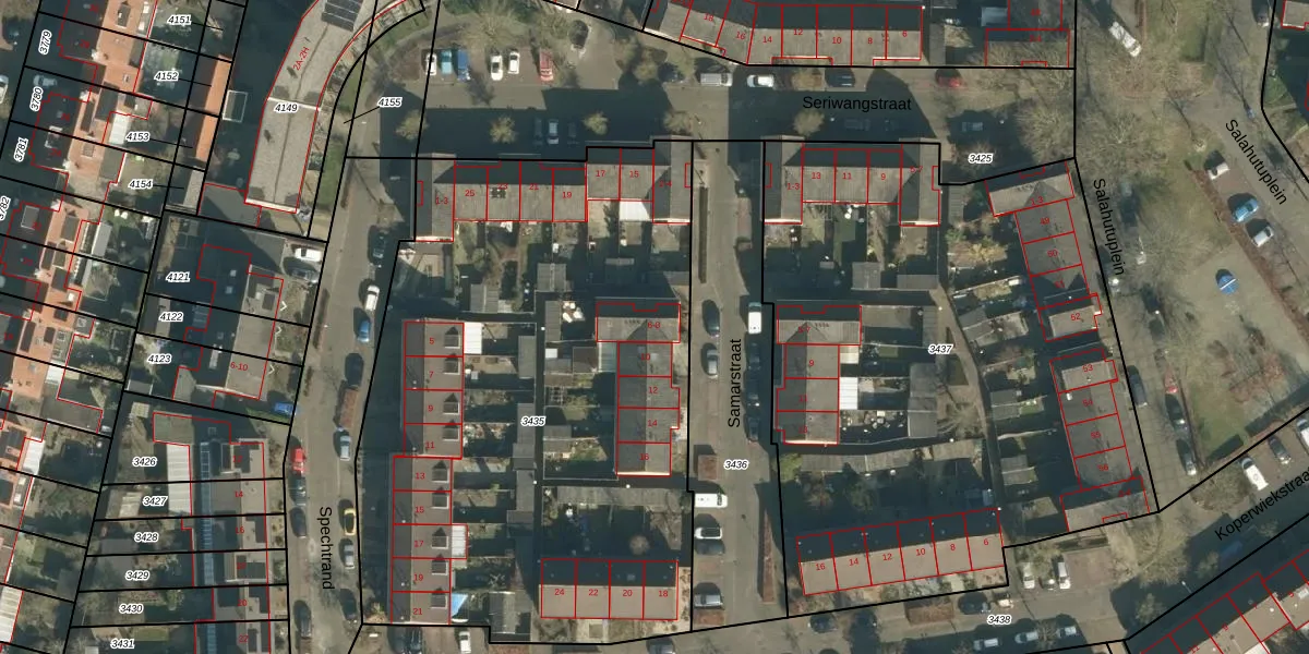 Het perceel waarop Samarstraat 6 staat heeft een oppervlakte van 3517 m². Dit is een zeer groot perceel. De perceeloppervlakte wordt geregistreerd door het Kadaster. Gedetailleerde informatie over de maten van dit perceel kunt u vinden in het rapport Kadastrale kaart met maatvoering van Samarstraat 6.