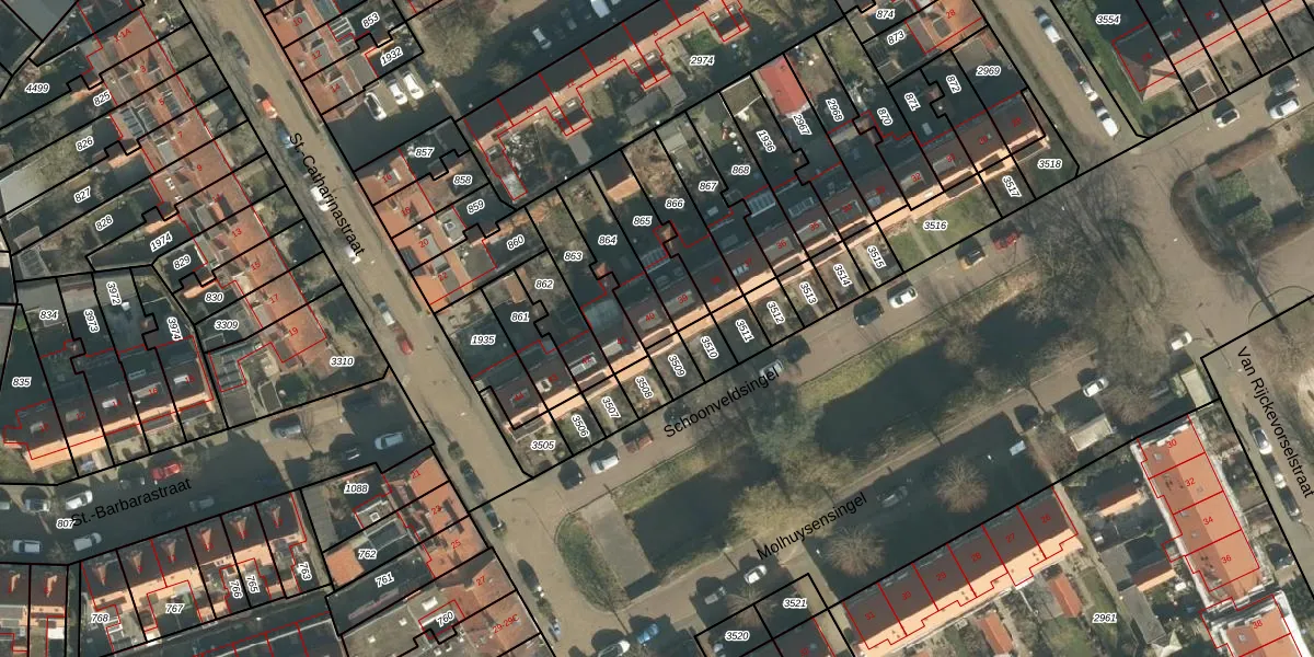 Schoonveldsingel 40 is gelegen op kadastraal perceel VUG00L864. Deze kadastrale aanduiding is uniek en wordt gebruikt door het Kadaster om eigendomsrechten en andere zakelijke rechten vast te leggen. Het perceel maakt onderdeel uit van de kadastrale gemeente Vught.