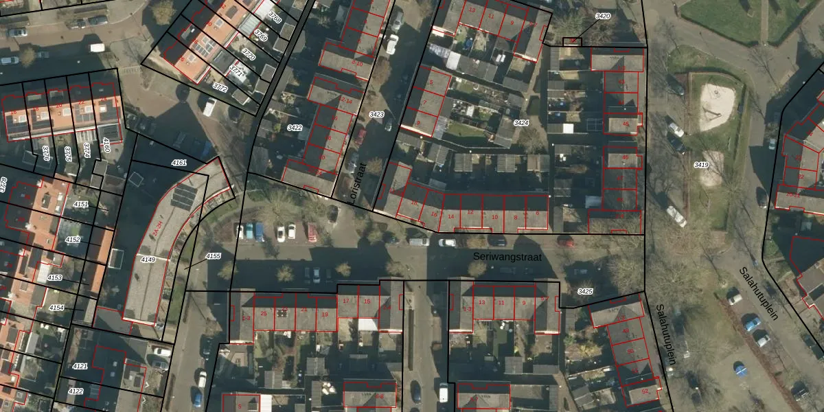 Seriwangstraat 18 is gelegen op kadastraal perceel VUG00E3424. Deze kadastrale aanduiding is uniek en wordt gebruikt door het Kadaster om eigendomsrechten en andere zakelijke rechten vast te leggen. Het perceel maakt onderdeel uit van de kadastrale gemeente Vught.