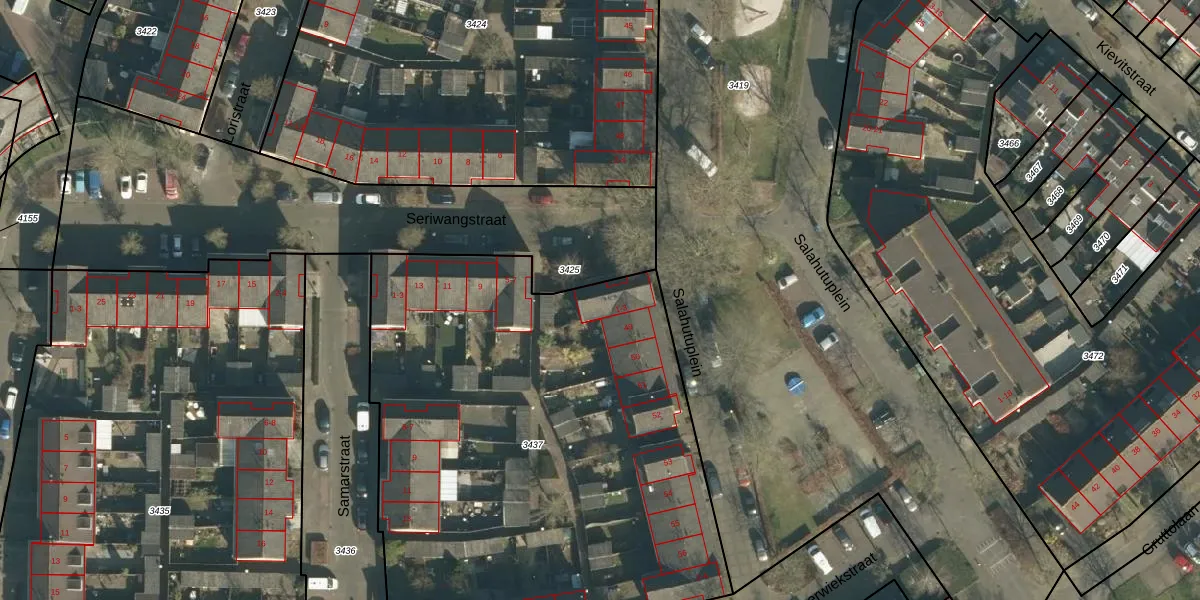 Het perceel waarop Seriwangstraat 3 staat heeft een oppervlakte van 3416 m². Dit is een zeer groot perceel. De perceeloppervlakte wordt geregistreerd door het Kadaster. Gedetailleerde informatie over de maten van dit perceel kunt u vinden in het rapport Kadastrale kaart met maatvoering van Seriwangstraat 3.