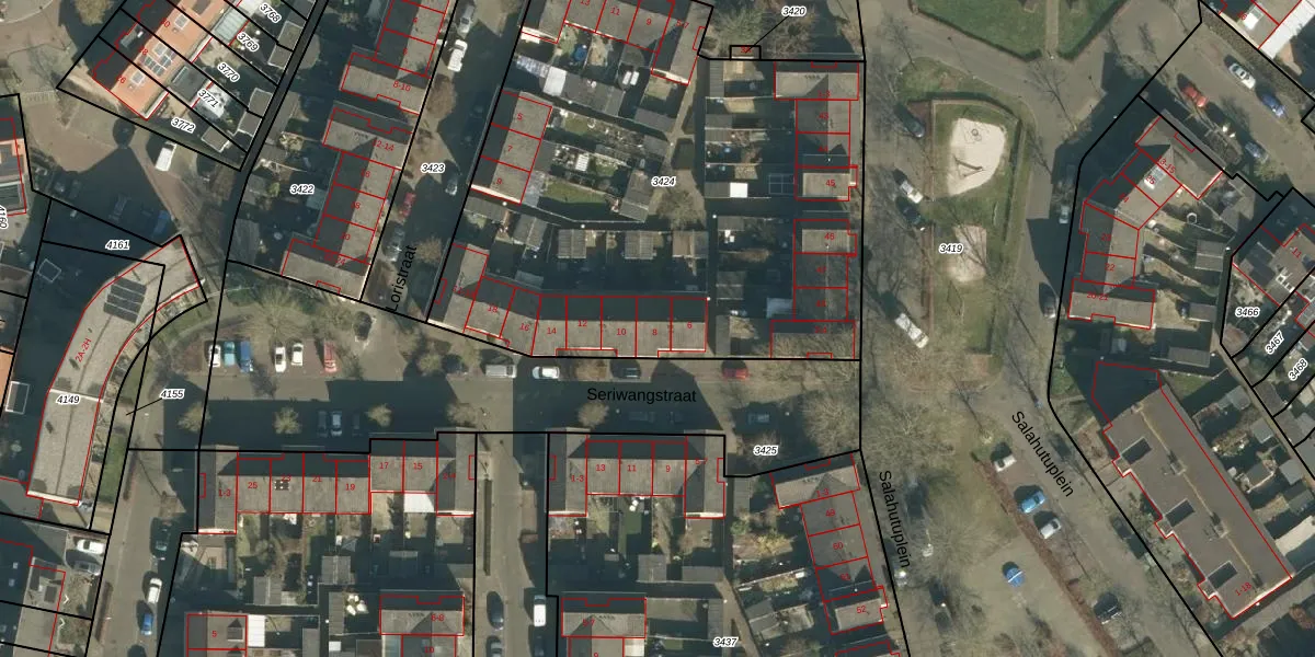 Seriwangstraat 8 is gelegen op kadastraal perceel VUG00E3424. Deze kadastrale aanduiding is uniek en wordt gebruikt door het Kadaster om eigendomsrechten en andere zakelijke rechten vast te leggen. Het perceel maakt onderdeel uit van de kadastrale gemeente Vught.