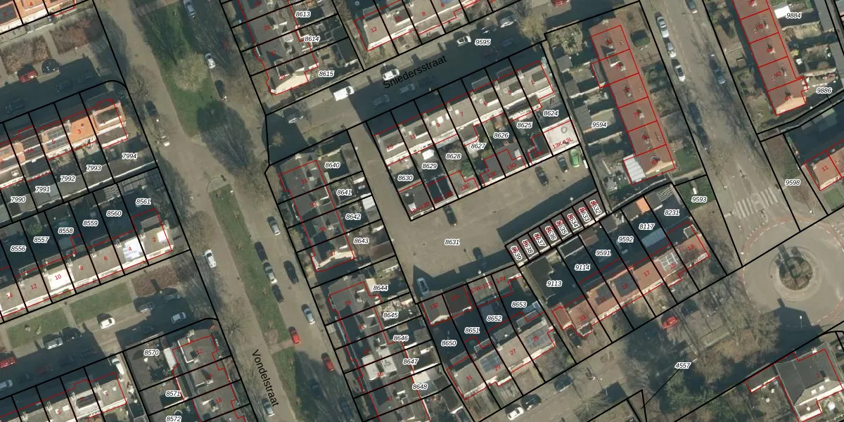 Sniedersstraat 13-B is gelegen op kadastraal perceel VUG00B8630. Deze kadastrale aanduiding is uniek en wordt gebruikt door het Kadaster om eigendomsrechten en andere zakelijke rechten vast te leggen. Het perceel maakt onderdeel uit van de kadastrale gemeente Vught.