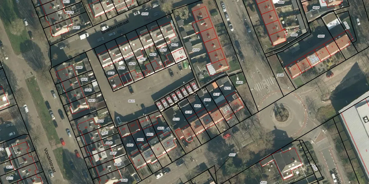 Sniedersstraat 13-P is gelegen op kadastraal perceel VUG00B8634. Deze kadastrale aanduiding is uniek en wordt gebruikt door het Kadaster om eigendomsrechten en andere zakelijke rechten vast te leggen. Het perceel maakt onderdeel uit van de kadastrale gemeente Vught.
