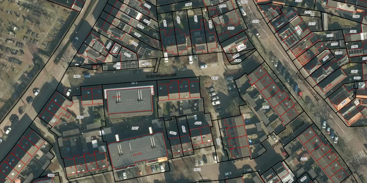 Het perceel waarop Sobriëtasstraat 3 staat heeft een oppervlakte van 730 m². Dit is een groot perceel. De perceeloppervlakte wordt geregistreerd door het Kadaster. Gedetailleerde informatie over de maten van dit perceel kunt u vinden in het rapport Kadastrale kaart met maatvoering van Sobriëtasstraat 3.