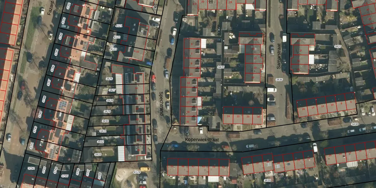 Het perceel waarop Spechtrand 15 staat heeft een oppervlakte van 3517 m². Dit is een zeer groot perceel. De perceeloppervlakte wordt geregistreerd door het Kadaster. Gedetailleerde informatie over de maten van dit perceel kunt u vinden in het rapport Kadastrale kaart met maatvoering van Spechtrand 15.