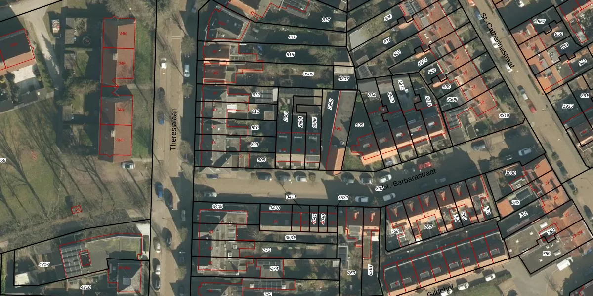 Gebruik de zoekbalk of klik op een perceel voor informatie over de adressen binnen dit perceel.