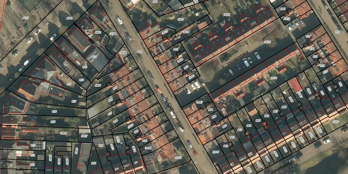 Gebruik de zoekbalk of klik op een perceel voor informatie over de adressen binnen dit perceel.