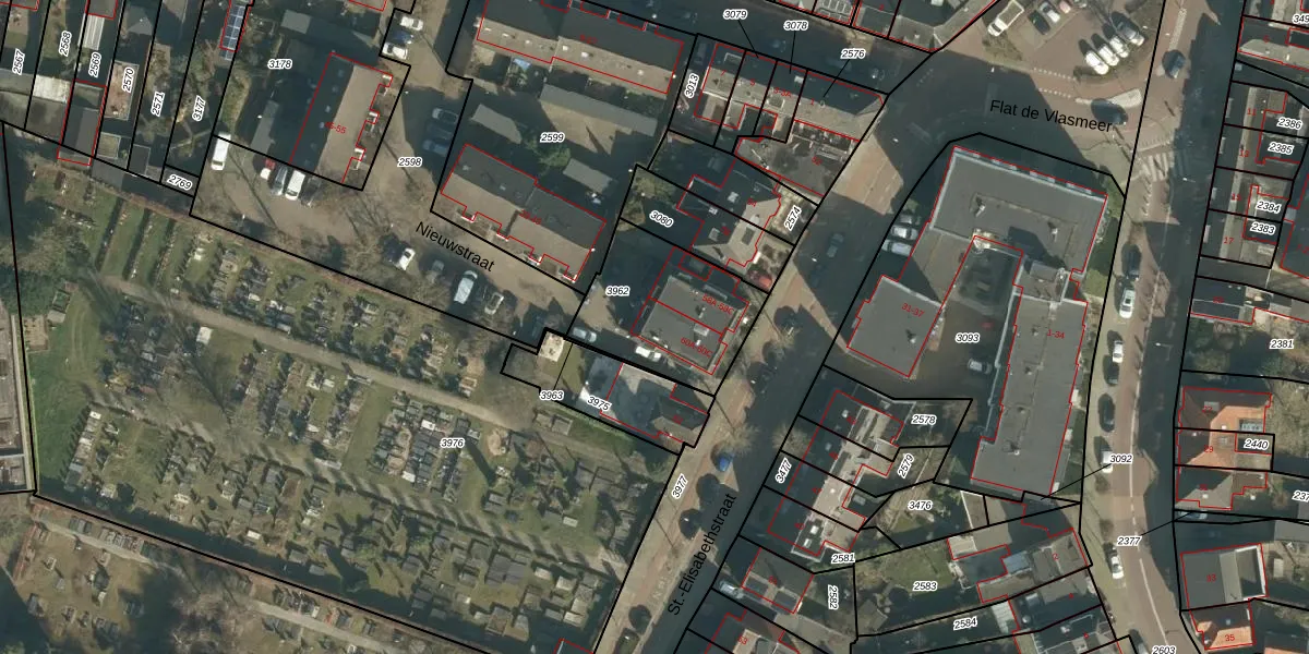 Het perceel waarop St.-Elisabethstraat 60-B staat heeft een oppervlakte van 470 m². Dit is een groot perceel. De perceeloppervlakte wordt geregistreerd door het Kadaster. Gedetailleerde informatie over de maten van dit perceel kunt u vinden in het rapport Kadastrale kaart met maatvoering van St.-Elisabethstraat 60-B.