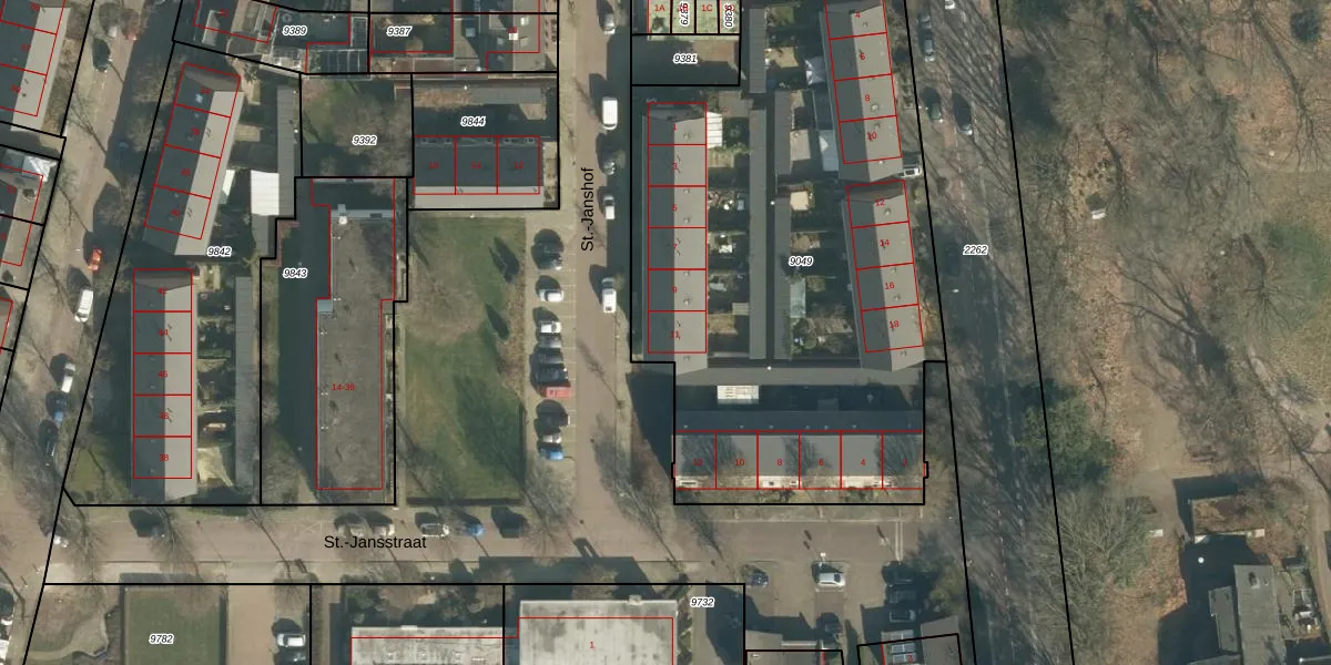 Het perceel waarop St.-Janshof 11 staat heeft een oppervlakte van 3062 m². Dit is een zeer groot perceel. De perceeloppervlakte wordt geregistreerd door het Kadaster. Gedetailleerde informatie over de maten van dit perceel kunt u vinden in het rapport Kadastrale kaart met maatvoering van St.-Janshof 11.