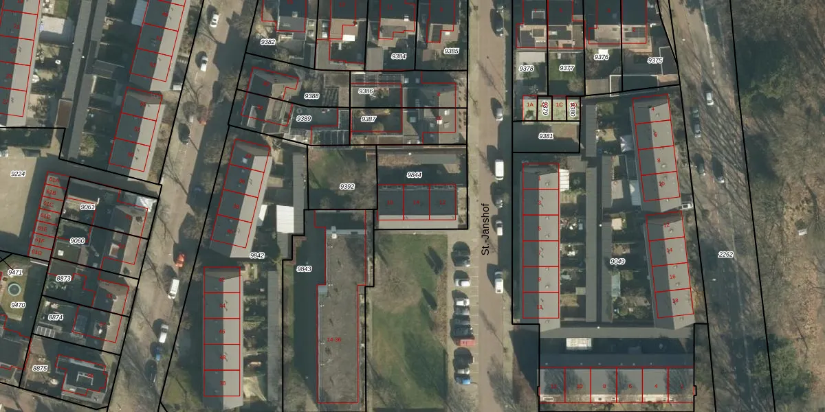 Het perceel waarop St.-Janshof 14 staat heeft een oppervlakte van 457 m². Dit is een groot perceel. De perceeloppervlakte wordt geregistreerd door het Kadaster. Gedetailleerde informatie over de maten van dit perceel kunt u vinden in het rapport Kadastrale kaart met maatvoering van St.-Janshof 14.