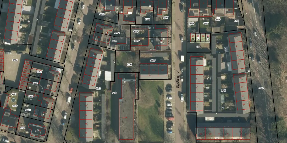 St.-Janshof 16 is gelegen op kadastraal perceel VUG00B9844. Deze kadastrale aanduiding is uniek en wordt gebruikt door het Kadaster om eigendomsrechten en andere zakelijke rechten vast te leggen. Het perceel maakt onderdeel uit van de kadastrale gemeente Vught.