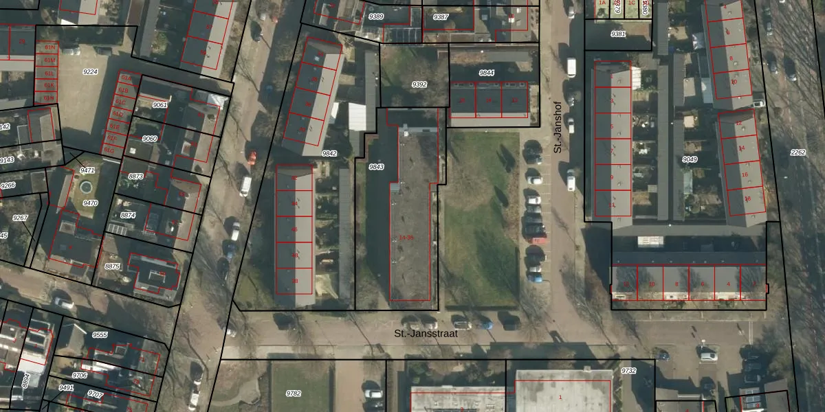Het perceel waarop St.-Jansstraat 28 staat heeft een oppervlakte van 987 m². Dit is een groot perceel. De perceeloppervlakte wordt geregistreerd door het Kadaster. Gedetailleerde informatie over de maten van dit perceel kunt u vinden in het rapport Kadastrale kaart met maatvoering van St.-Jansstraat 28.