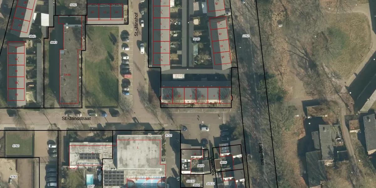 St.-Jansstraat 8 is gelegen op kadastraal perceel VUG00B9049. Deze kadastrale aanduiding is uniek en wordt gebruikt door het Kadaster om eigendomsrechten en andere zakelijke rechten vast te leggen. Het perceel maakt onderdeel uit van de kadastrale gemeente Vught.